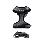 Barry King Zestaw szelki + smycz czarny/biały wzór pepitka poliester rozmiar S